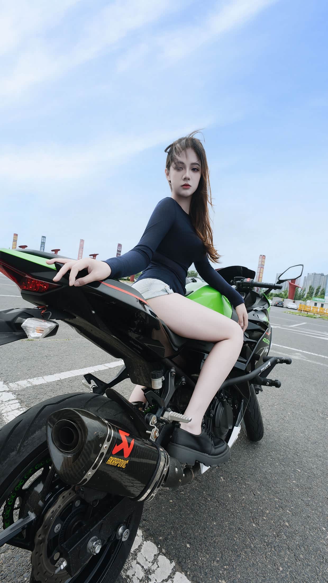 她特意让我把她的机车骑出来,给她和新车拍了一组照片