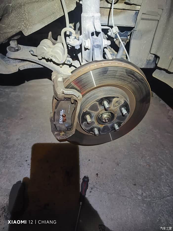 原车刹车盘不错的,磨损不到极限,没必要更换盘。