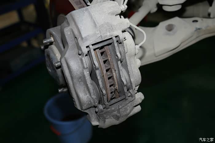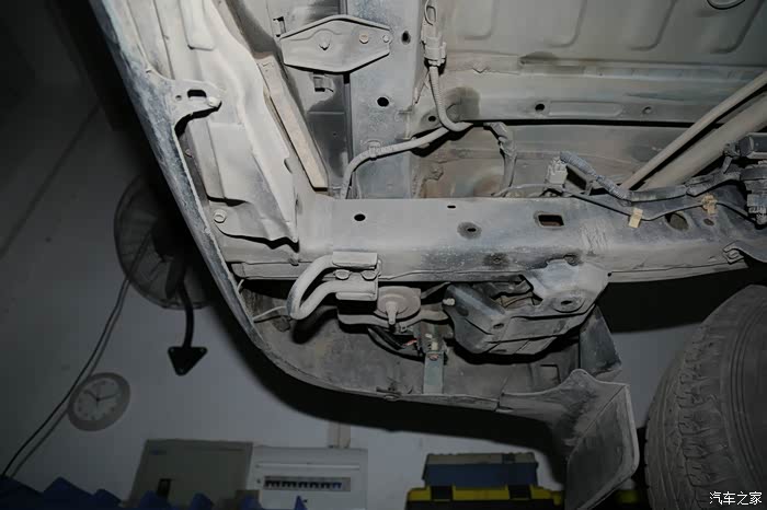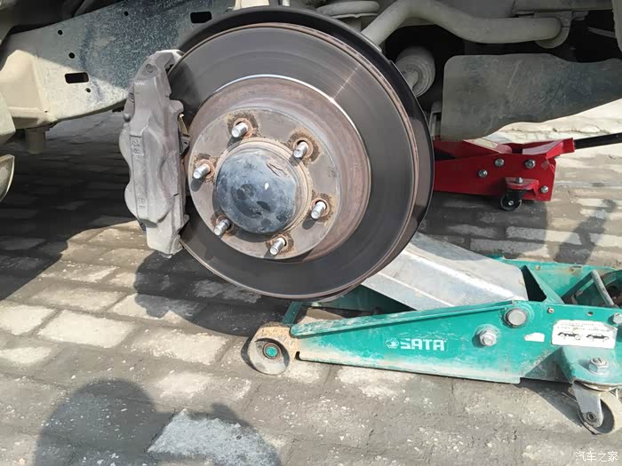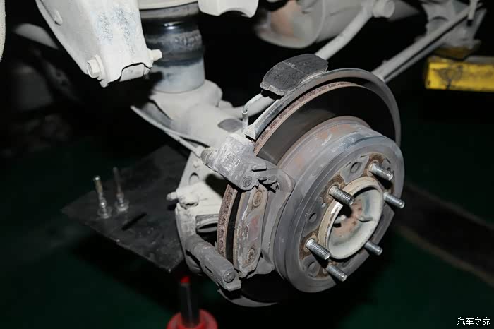 后轮换上刹车片,调整手刹间隙,后面很简单,几根撑杆检查一下,修微面的师傅也随便动它。