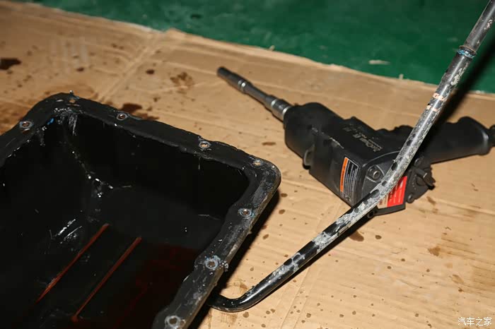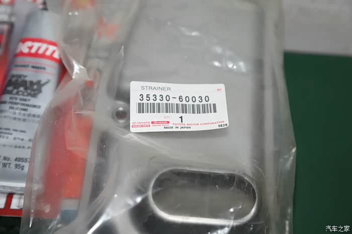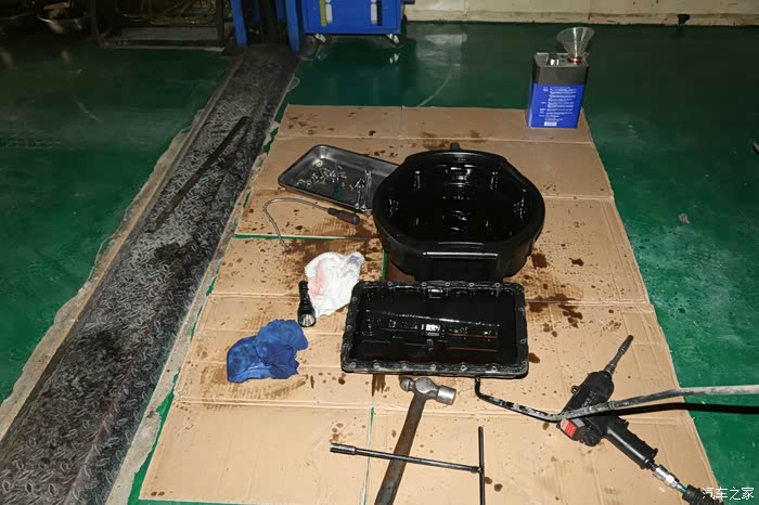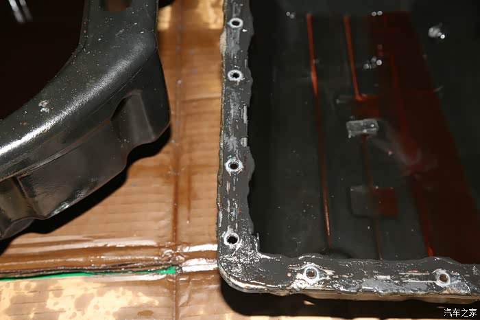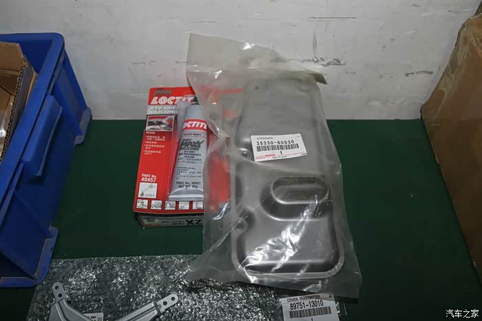 拆卸变速箱油底壳,可以看见,以前该车拆卸更换滤网以后使用的密封胶很一般,而且壳子有明显的撬动痕迹,并且变现,显然我看不上眼!使用德国汉高顶级密封胶,日本原厂的滤网和全新变速箱油底壳