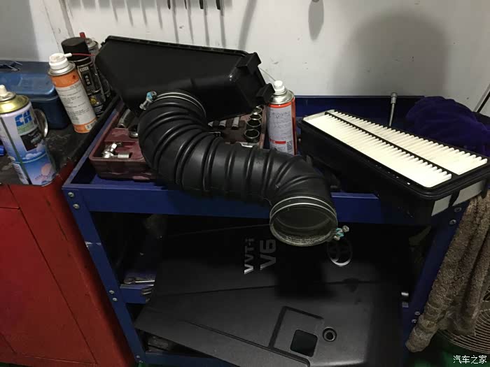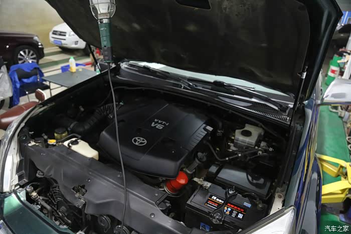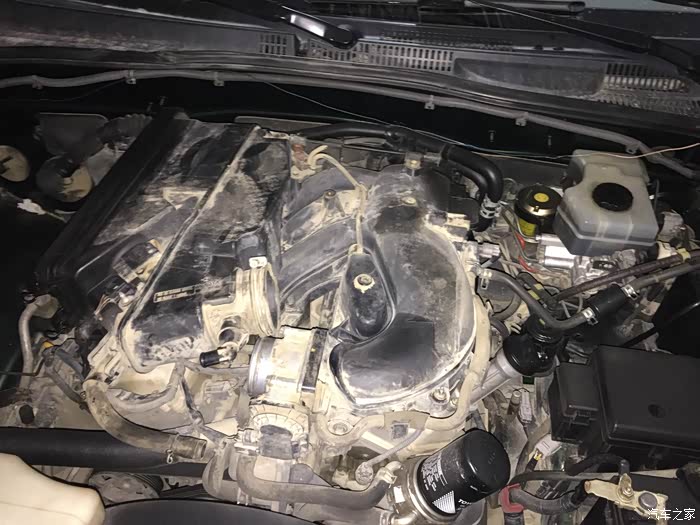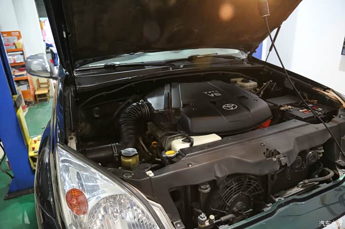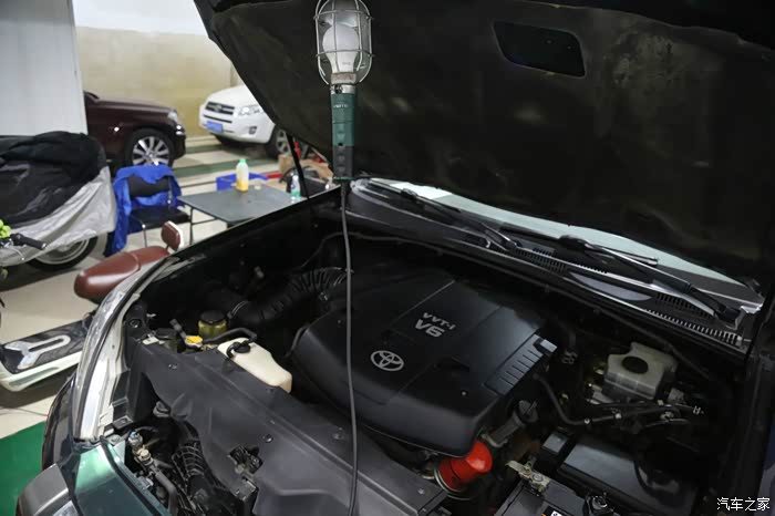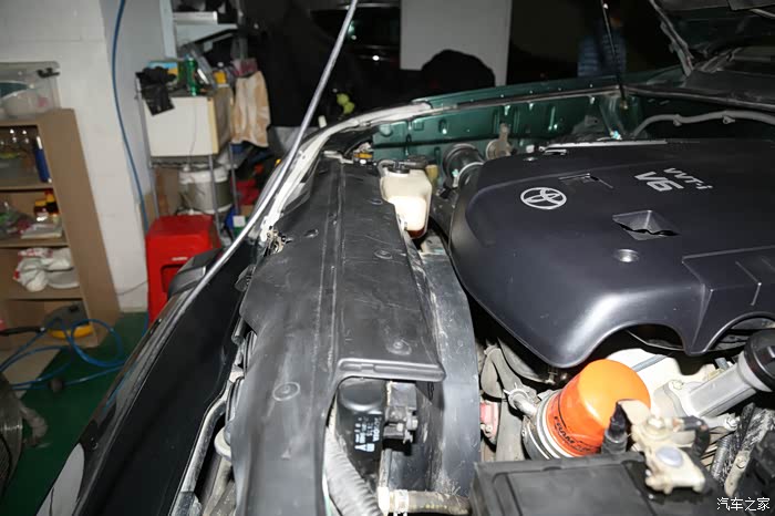 组装完毕,清洗以前的污垢,由于1GR顶置机油格,每次换机滤的时候都会有机油留下,造成下面比较多的油泥,冲洗干净,安装下护板