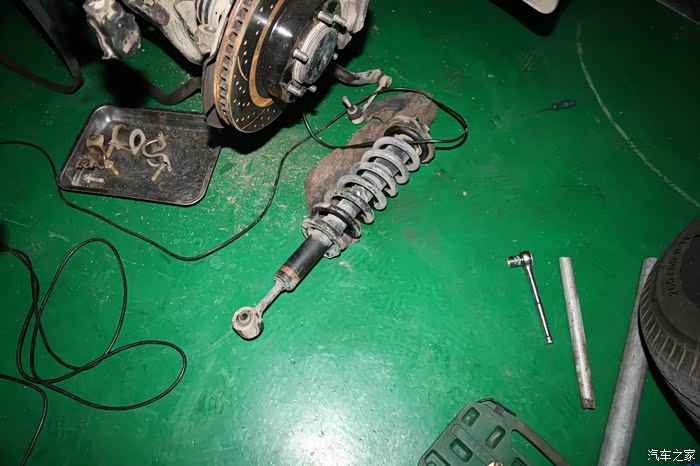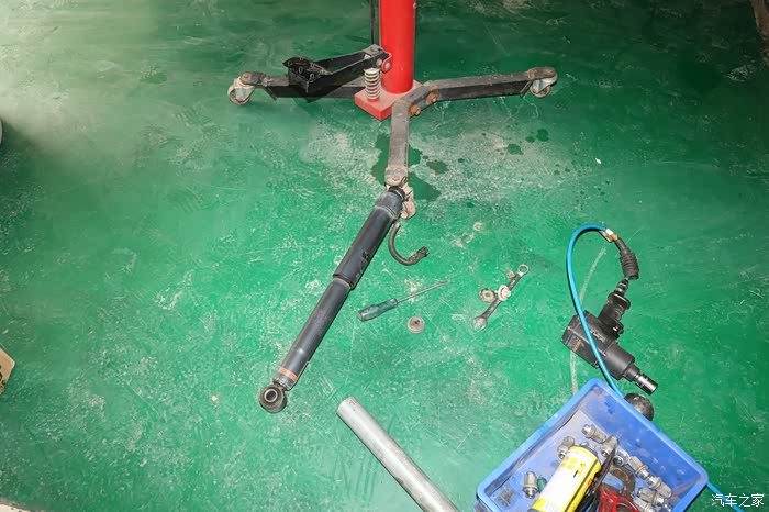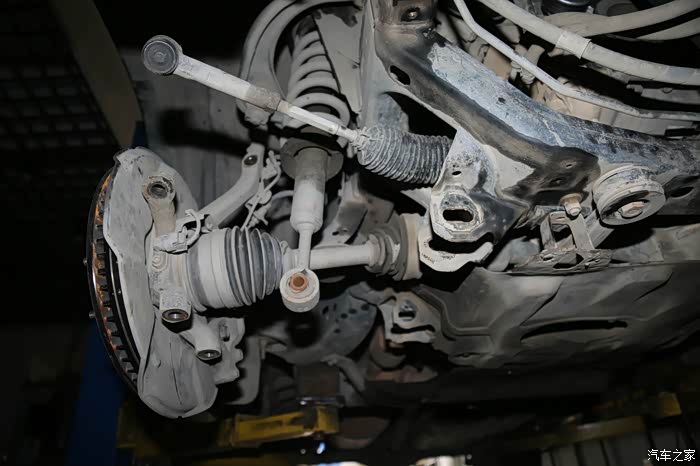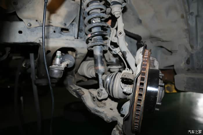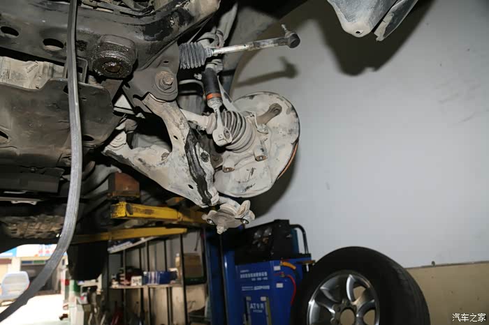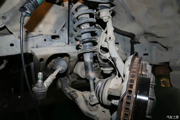上面的图片可以很清楚的看见避震器漏,球头破损,直接一步到位