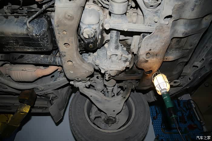 检查悬架系统,最新款的LC200和LX570前面改良了下摆臂和平衡杆的位置,由于车身更宽,大梁也更宽一些,抗扭转能力巡洋舰明显更强大,另外排气管和油箱的位置和霸道是反过来,可以更容易布置V8发动机的排气,和双油箱,又同时满足底挂备胎,巡洋舰LC200吸取了这一代独立悬挂设计的整体结构,并强化,成为真正的霸主,但是维修方法LC120基本一致,可见LC120底盘确实是超前设计。