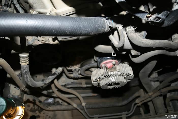检查硅油离合器,它会永远的跟着发动机转,这样的设计就是发动机温度可以控制的很好,不会像普通车到了一定的电脑控制温度,再通过继电器让电子扇工作,那么如果到了温度电子设备出问题,那就开锅,严重就拉瓦,冲汽缸垫,何谈可靠,所以专业的越野车第一步就是要有硅油离合器的风扇!