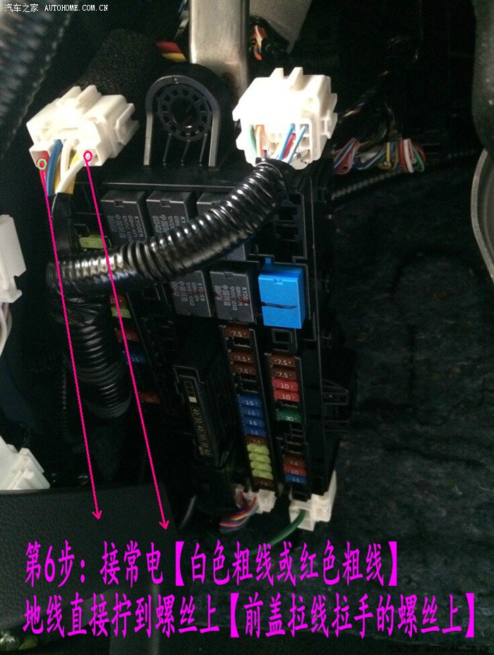 以上是自动升窗安装步骤,下面是【防盗安装步骤】。【安装在驾驶室,方向盘下面】