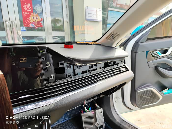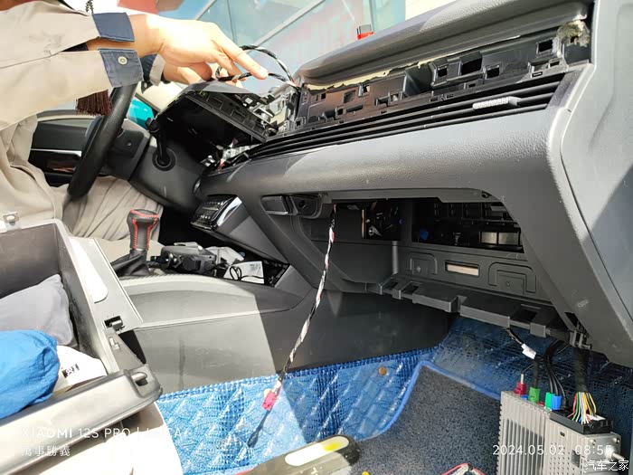 更换屏蔽线需要拆下副驾驶手套箱,副驾驶前方前装饰面板和车机大屏,然后将屏蔽线从仪表台内部穿过连接主机完成更换安装过程。