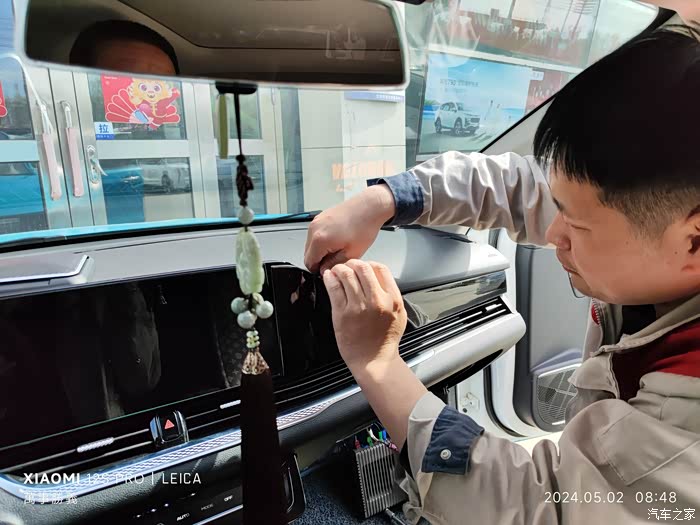 此次出现问题是在倒车时发现的,倒车影像在车机屏幕出现卡顿现象,屏幕闪烁。自己先是采用了方向盘右侧强制重启键强制重新启动车机系统,未见改善;然后又熄火重新启动,反复几次未见改善;自己没有使用断开电瓶负极的大招进行处理,直接拿出手机录制了故障视频发送给售后工作人员。经售后人员与维修师傅判断故障为三号屏蔽线出现问题需要更换,屏蔽线店里现货随时可以进行更换。