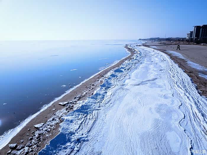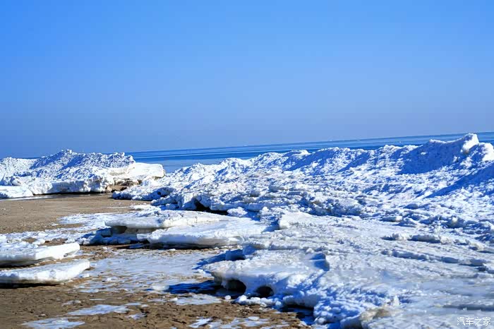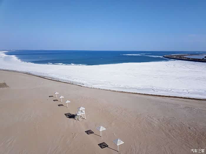正是寒冬时分,北戴河的海岸空无一人,冰冻的浪花仿佛凝固了时间。
