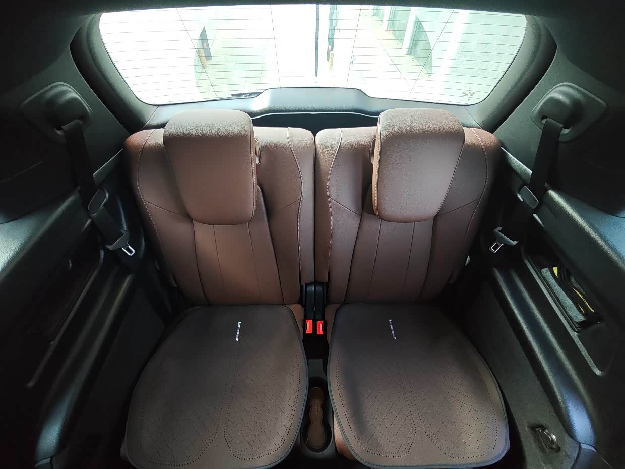视角转到车内,将第二排座椅稍稍前移,第三排乘客就有了空间,头部、腿部都算够用,座位填充也与前面一致。