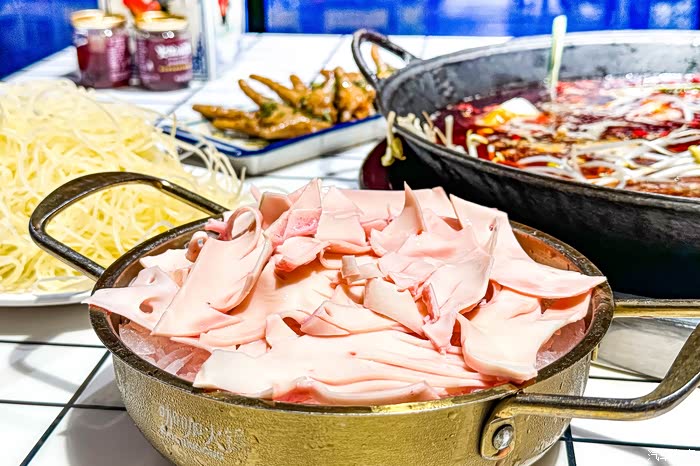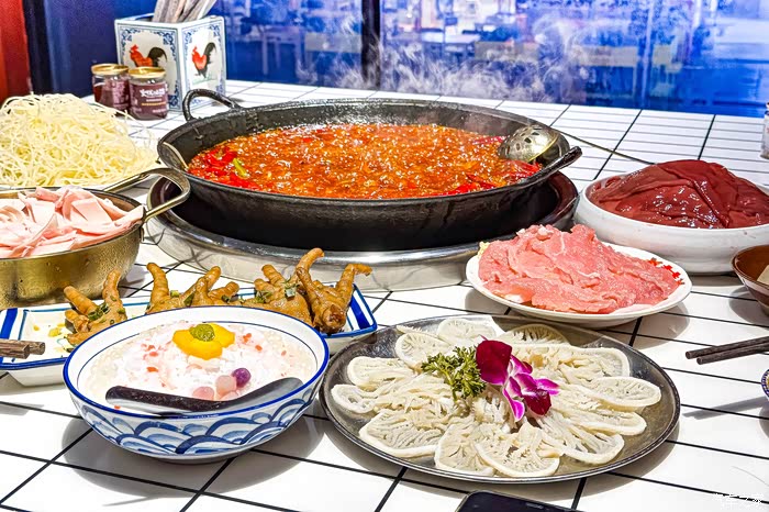 或许是生意太好,感觉他们的上菜速度并不快,甚至冷锅血都忘记给我下了,还是我后来去催的。两个人先点了7份菜,千层肚、耙鸡脚这都是每次吃火锅的必备菜品