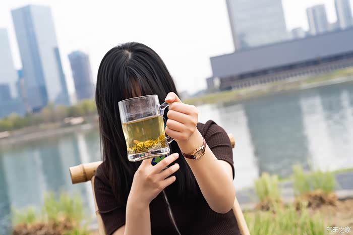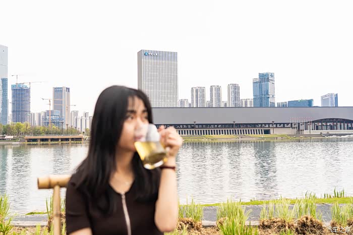 当我拿着相机拍风景时,女友也拿出手机开始拍照。看这架势,应该是用iphone的“人像模式”在拍茶杯细节
