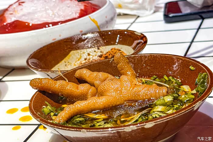 耙鸡脚是我每次吃重庆火锅必点的一道菜,因为真的很好吃!鸡脚很耙很糯,可以说入口即化,鸡脚是提前卤过的,在火锅里煮过之后就更香了。一份耙鸡脚一共有5个,我们前后点了三份,真的太喜欢吃了