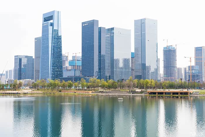 在秦皇湖畔,可以看到天府国际会议中心、西部国际博览城、中建大厦、天府国贸天地等众多商务楼宇,坐在这里喝茶好似置身于城市里的世外桃源