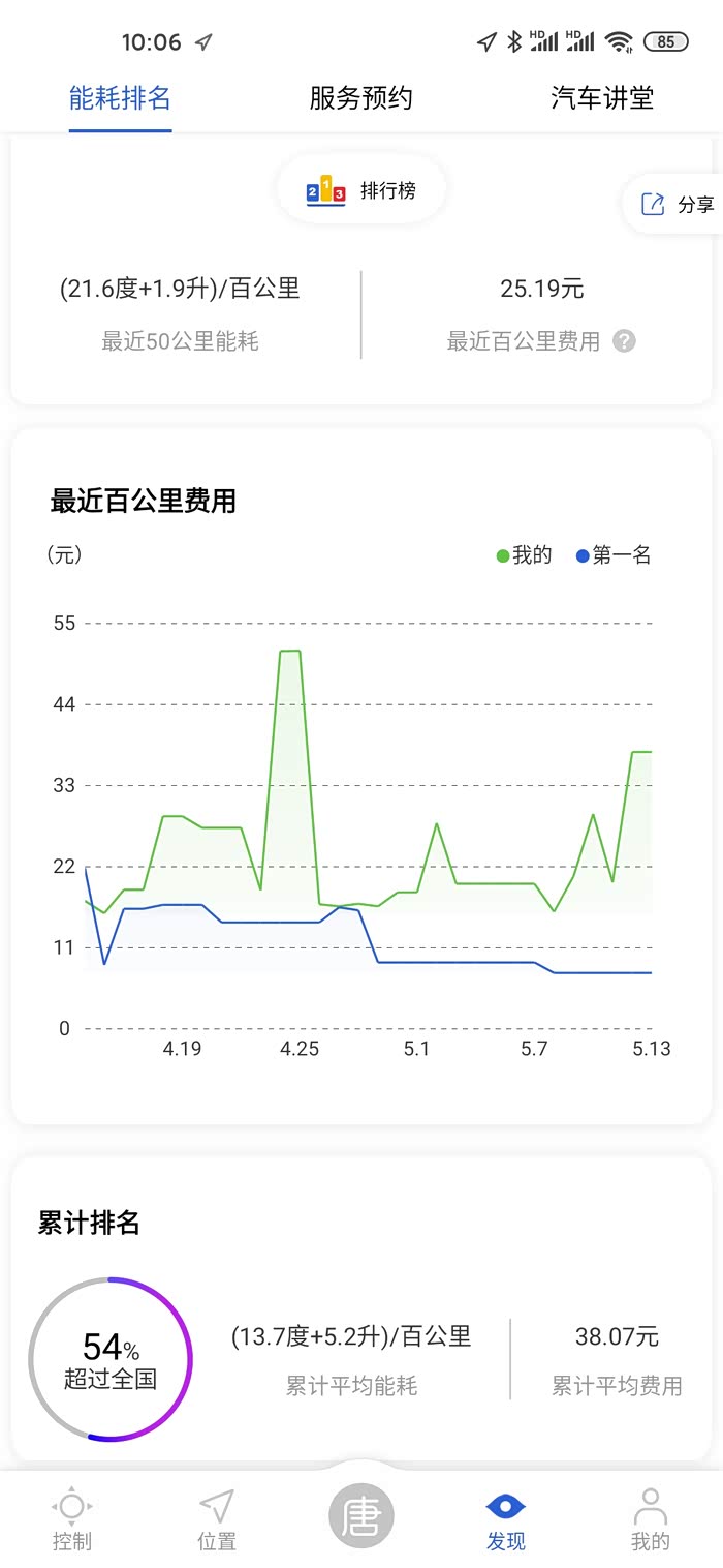 能耗还可以,充电方便用电成本比较低。不过现在油价这么低,用油成本也不高,开hev磨磨车。