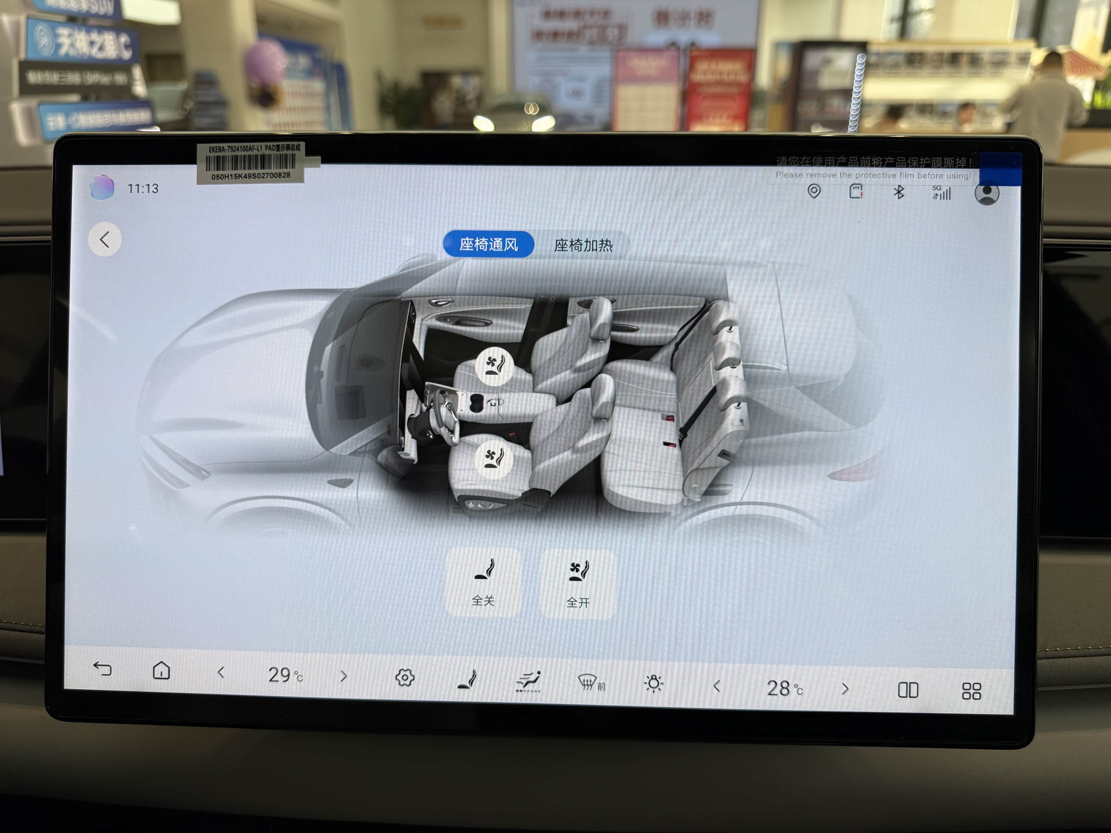 舒适性配置方面,标配了前排双层夹胶玻璃、后排隐私玻璃、自动雨刮、眼镜盒、前排座椅支持通风加热电调、8个扬声器、电尾门等等。