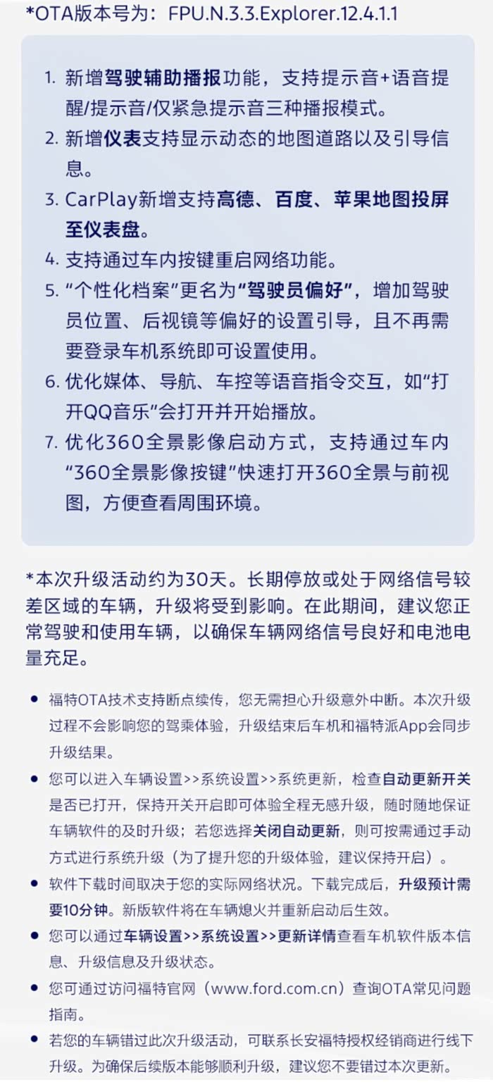 耐心等待就行了,或者自己在设置里试试手动。上个月我还为此去了4S店,打了福特客服电话,被告知我的车不在上个月升级范围,虽然app收到了一条更新提醒。