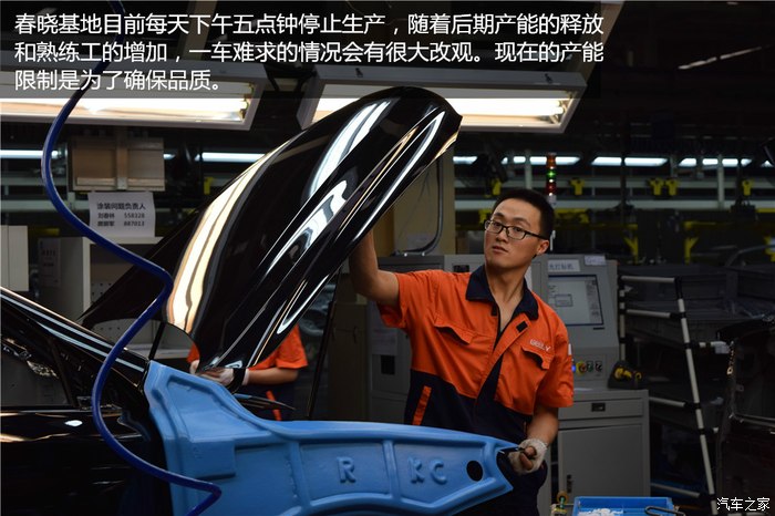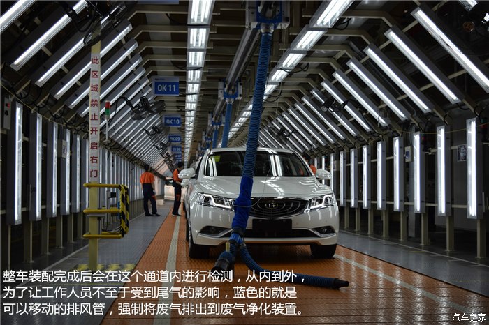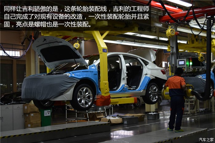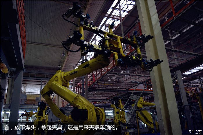 A:这一条生产线是目前吉利乃至于所有中国品牌中自动化程度最高的生产线,从我们的参观过程中也可以发现,在焊装车间基本上百分之九十左右的焊接都是由机械手完成的,使用机械手完成焊接,并且用机械手完成测量和检定,对于产品质量的平稳是由很大帮助的。