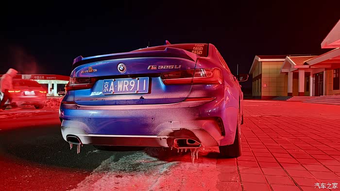 寒冷天气冻的排气管子都鼻涕横流,但远处的中石化就是这辆宝马3系的精神伙伴,分分钟就满血出发了。