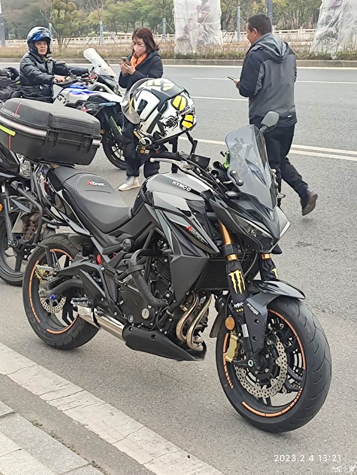 英雄所见略同,我试驾过川崎K400,最后还是选择了这个武士黑,感觉K400像250级别的,属于轻巧灵活风格,这个有大排的气势,高速稳,当然配置就不用说了,加速也感觉这个猛,可能K400油耗低或限制了动力。现在就是刹车时,前刹有蝉鸣声,光阳老板说是对向四活塞卡钳都有这声音,不知正确否