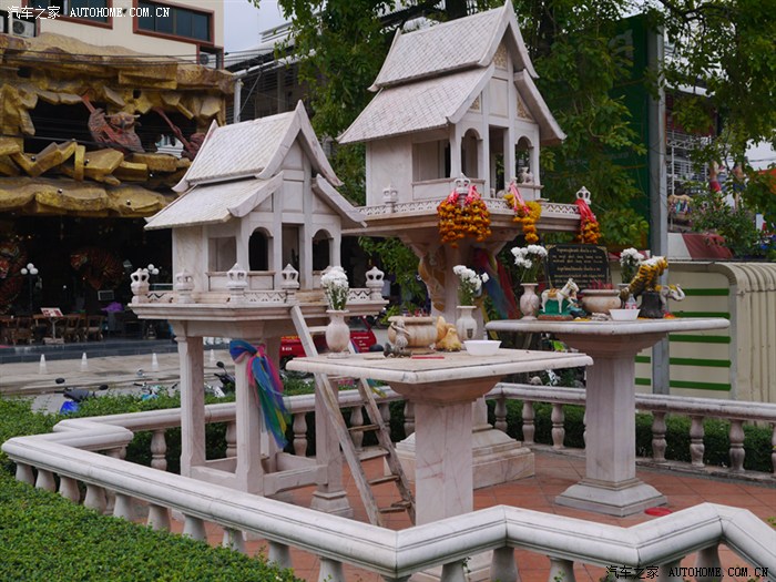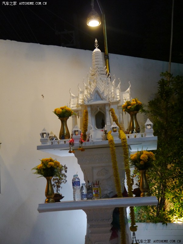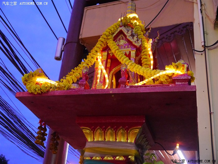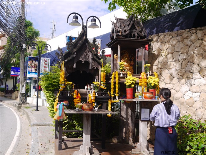 很多店门口都有这样的四面佛龛,供奉着清水,一尘不染,晚上也弄上灯带,很醒目。宗教信仰的确教化人啊。