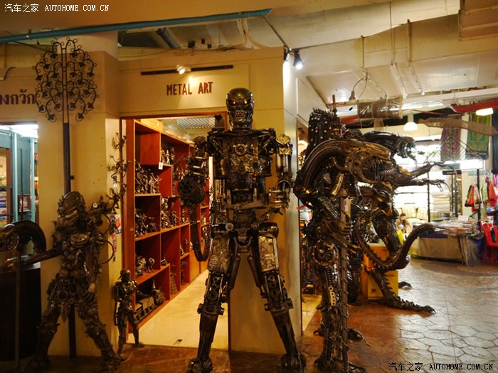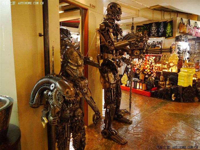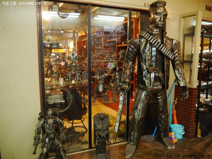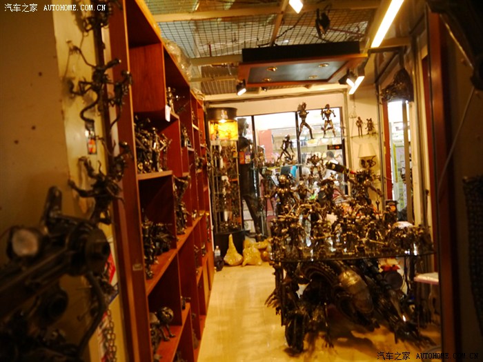 这个金属艺术品店抢眼啊,都是自己用废零件焊的