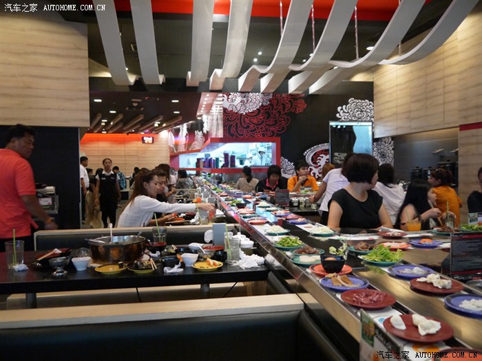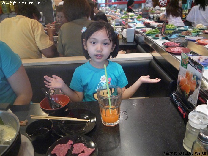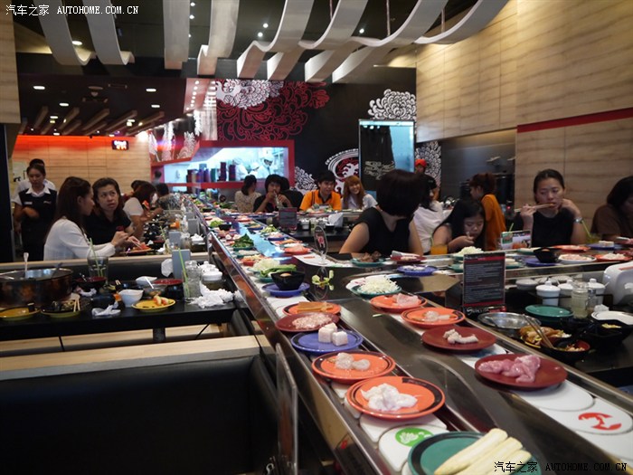 午餐吃旋转寿司,大人355B,小孩165B,限时75分钟,对我来说40分钟就够了,饭量大的人更合算。