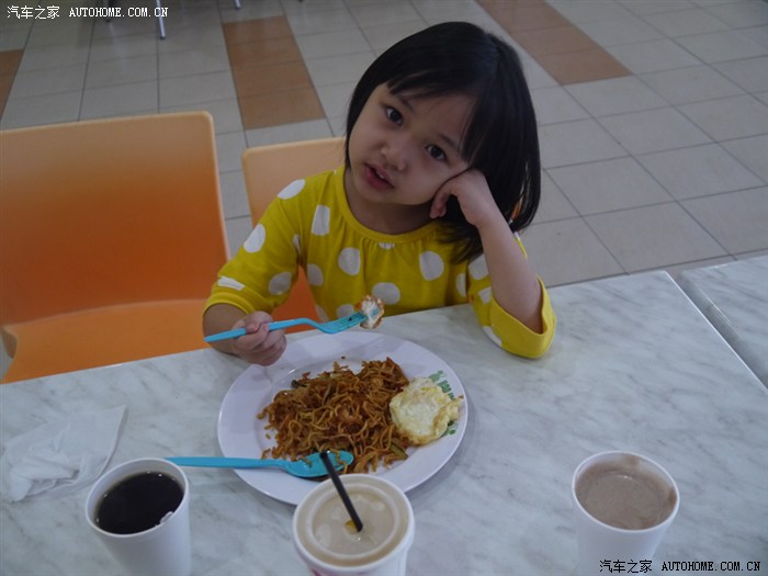 真没啥吃的,也许我们去太早了,没多少出摊的。虽然看到了KFC,可领导说马来和泰国的KFC和麦当劳无比的难吃,所以彻底放弃。只好吃点面包炒面充饥了,看看我家小祖宗的表情,就知道味道不咋样了。(补充:本人和领导英语都烂,基本上是跟服务员打哑语买的这些)