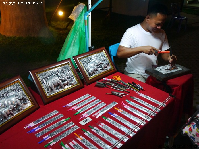 工匠现场演示制作我比较喜欢,更有特色,大概是锡器浮雕,一个书签都要100B,其实大爱后面的大象浮雕,竟然忘了问价格,略有些遗憾(但愿非常贵
