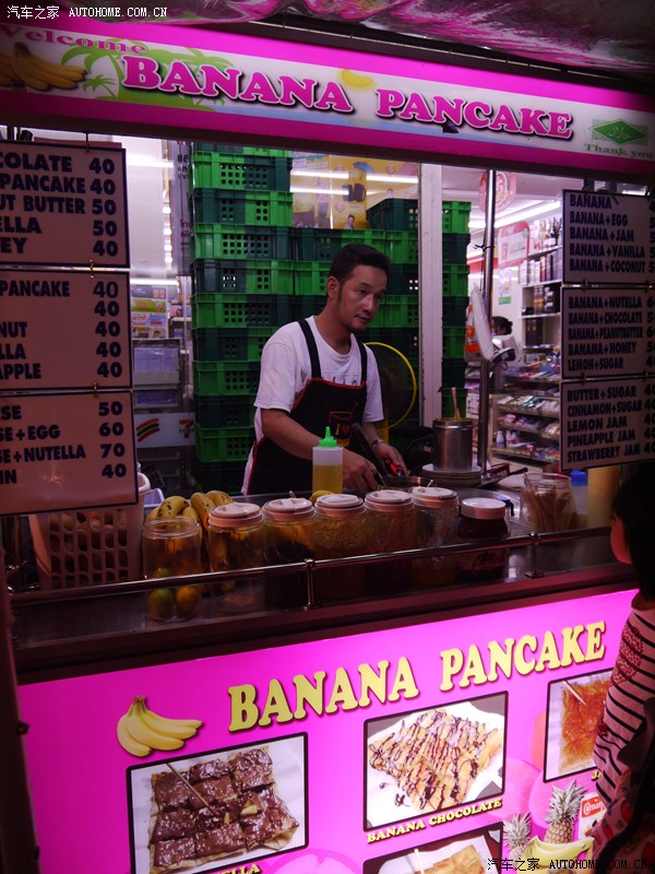 特色小吃BANANA PANCAKE(香蕉饼),领导认为这个摊主比较帅,就来一张吧。