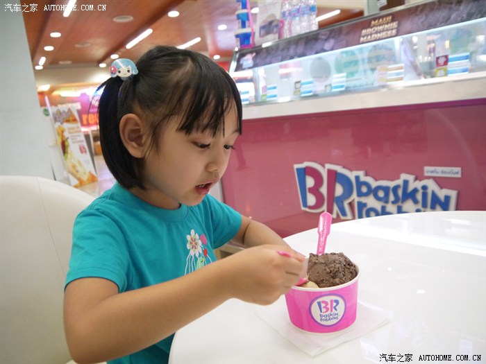 传过去有个小广场,看见DQ没? 这里的DQ中杯是45B一杯,比国内便宜多了。