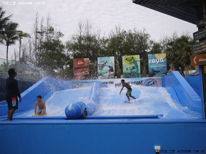 酒吧旁这个教人冲浪的玩意太吸引人了(注意,水流是从下往上冲的),看人家玩得多欢,咱们在国内海边搞一个绝对赚钱吧