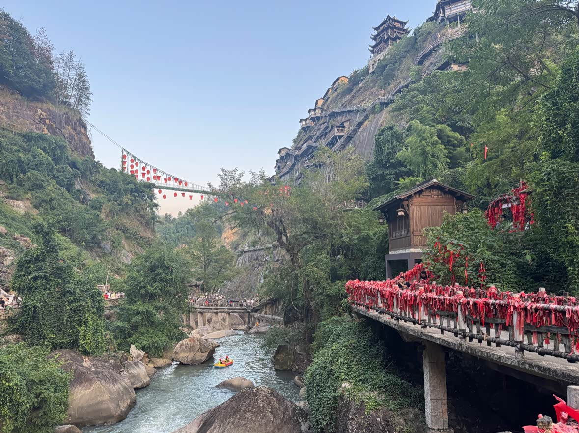 早在九月初,我们一家三口就开始筹划十一的出行计划。我提议去一个既能欣赏自然风景,又能感受人文气息的地方,老婆则希望路程不要太遥远,避免长时间开车劳累,12岁的儿子更是兴奋地举着平板,翻看着各地的游玩攻略,吵着要去有山有水的地方。在翻阅了大量攻略后,江西上饶的望仙谷进入了我们的视线。攻略里说,这里藏在赣东北灵山脚下,是集山水人文与赣家民俗于一体的现实版仙侠世界,白天可探秘峡谷瀑布,夜晚能欣赏灯火璀璨的悬崖夜景,而且从我们所在的城市出发,自驾全程约6小时,刚好适合小长假出行。确定目的地后,我们便开始提前准备:预订景区周边的民宿、查询实时路况、准备出行衣物与零食,儿子还特意用彩笔在笔记本上画了望仙谷的游玩路线图,兴奋地规划着每一天的行程。