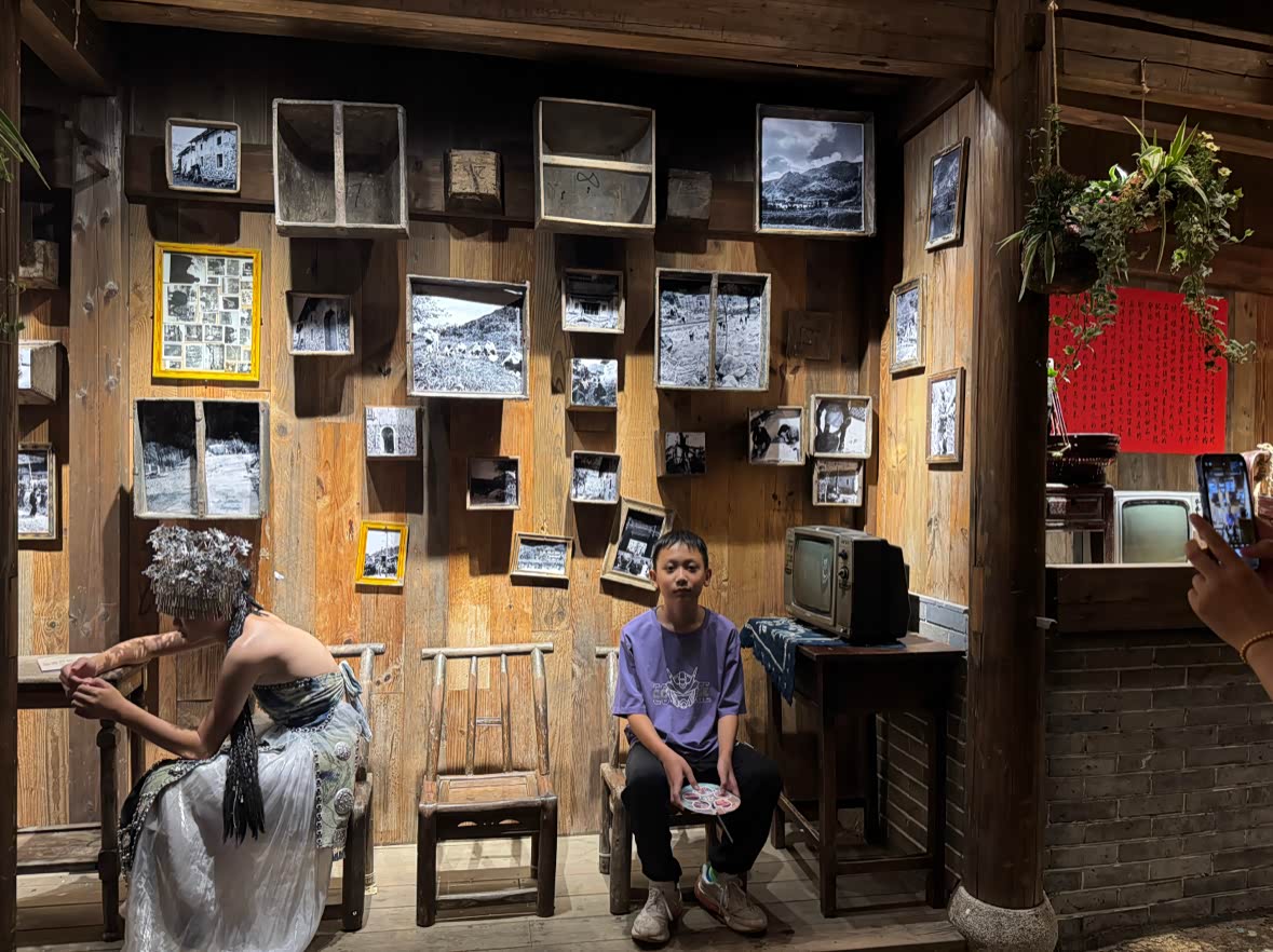 下午,我们在古村漫无目的地漫游。胡氏宗祠的六柱五间木结构建筑古朴典雅,精美的木雕寓意吉祥,我驻足良久,仔细欣赏着这些传统工艺,不时和老婆讨论着古建筑的结构与历史,儿子则在一旁好奇地打量着祠堂里的陈设,追问着各种关于古建筑的问题。杨府内正在上演弋阳腔表演,演员们身着华丽的戏服,用高亢激昂的唱腔演绎着古老的故事,虽然听不懂唱词,但那独特的韵律和精湛的表演还是让我们驻足观看了许久,儿子还学着演员的样子比划着动作。老婆被街边的文创店吸引,挑选了几个带有望仙谷特色的小摆件,准备带回家送给亲戚朋友,还特意给儿子选了一个小木雕挂件。