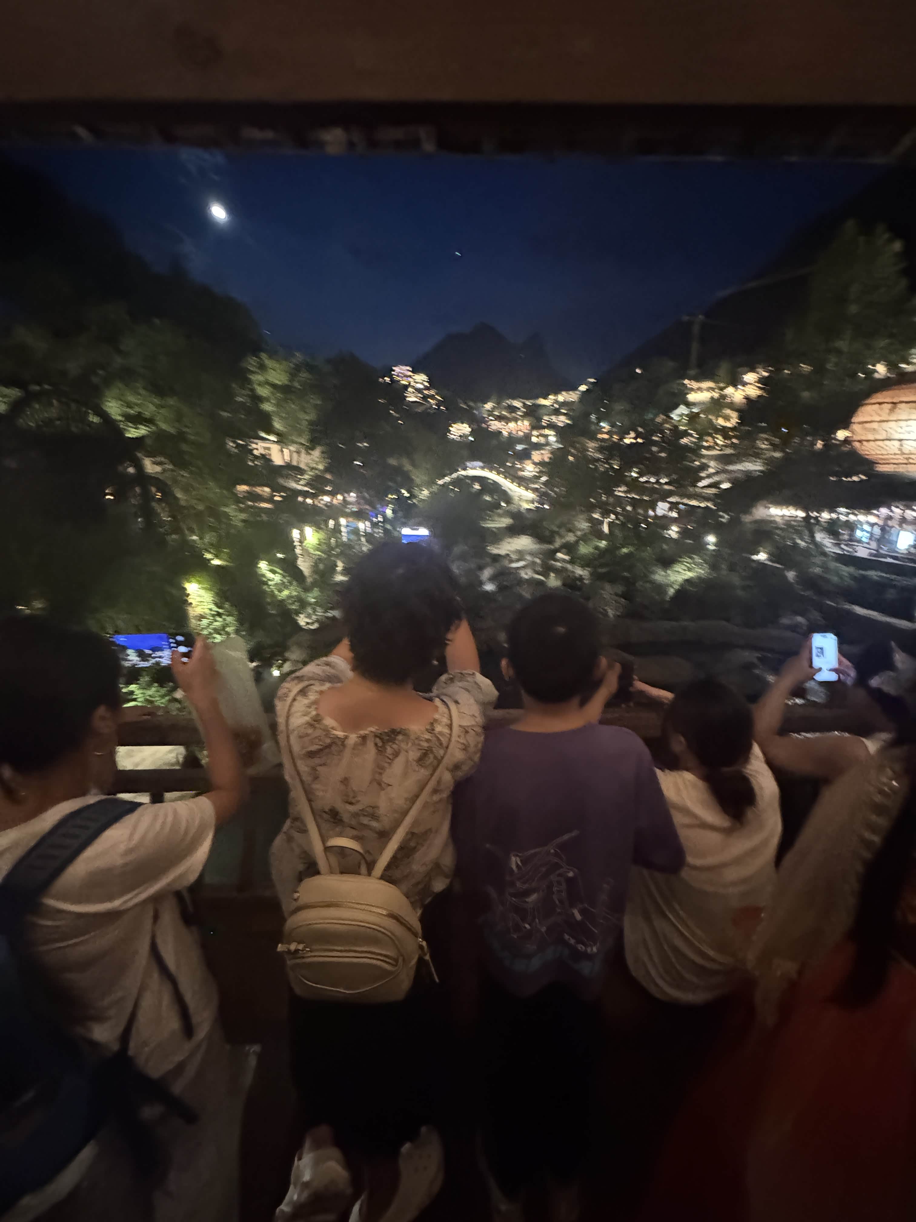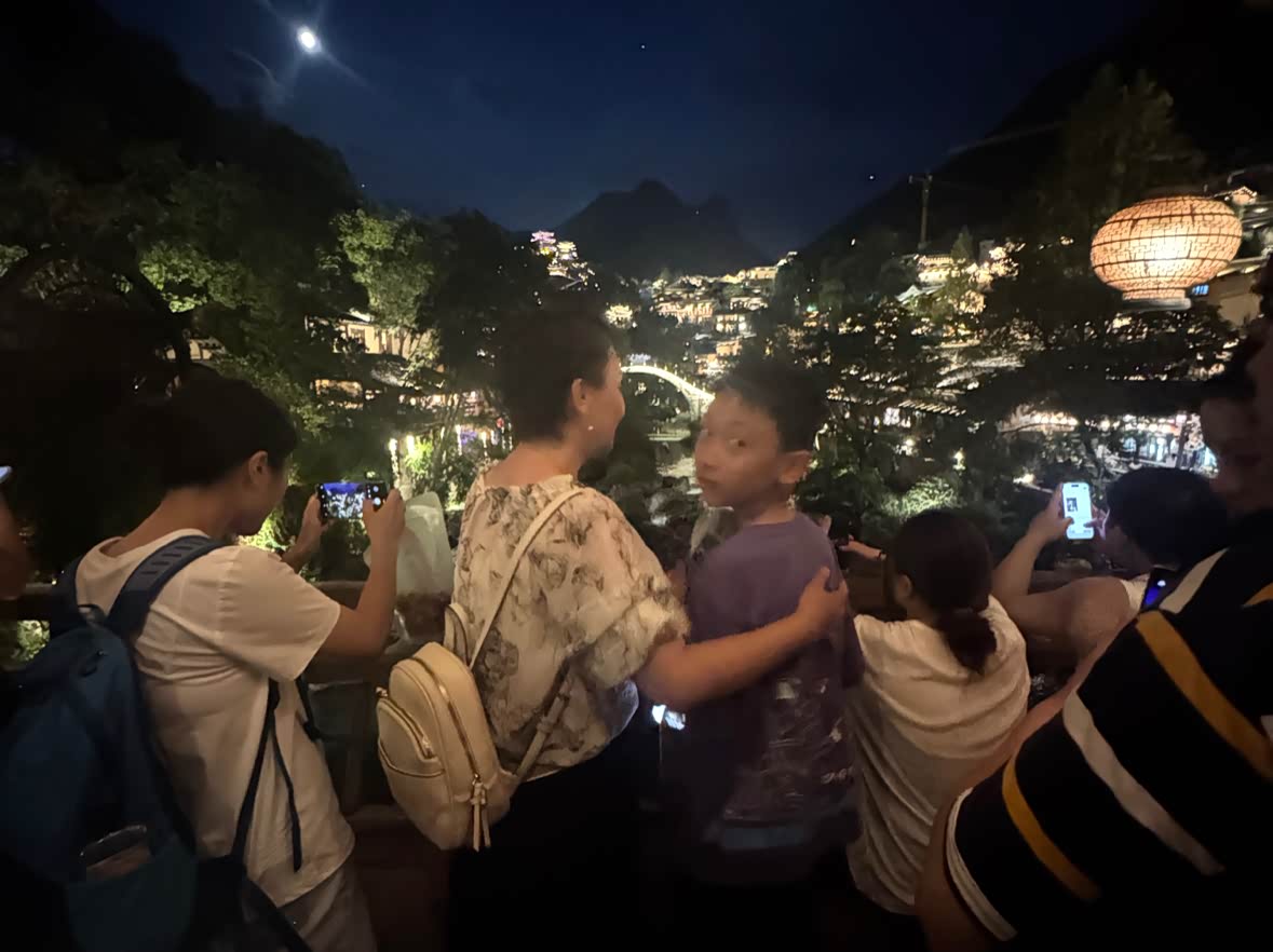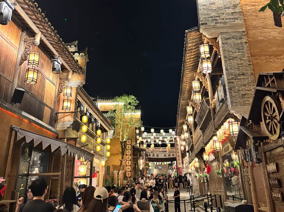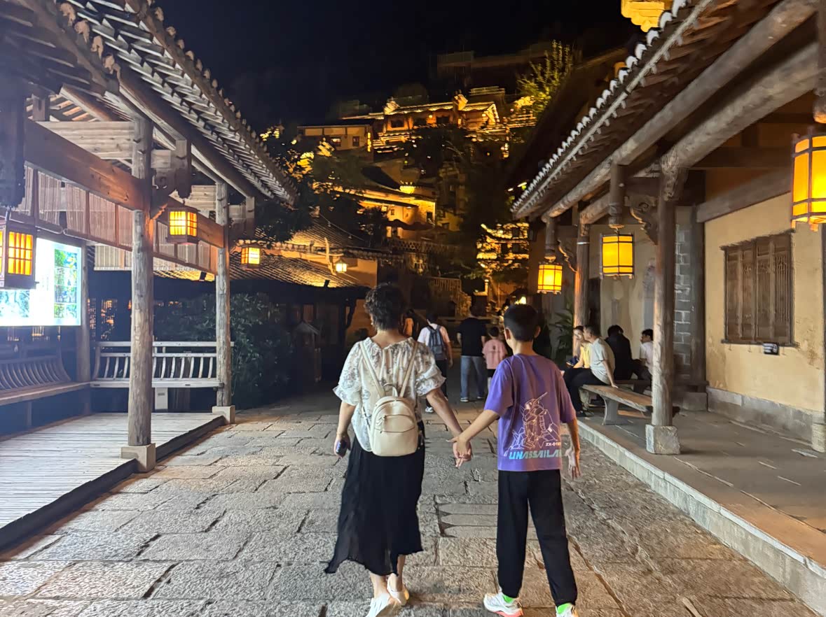 晚上八点,景区的篝火晚会准时开始,熊熊燃烧的篝火照亮了每个人的笑脸,也点燃了我们的热情,这份热闹与温暖至今仍让人记忆犹新。身着民族服饰的演员们带领着游客载歌载舞,我拉着老婆的手加入人群,儿子则在一旁穿梭奔跑,很快就和几个同龄的小朋友玩到了一起,跟着音乐的节奏蹦蹦跳跳,脸上洋溢着灿烂的笑容。看着儿子开心的样子,我和老婆相视而笑,满心都是幸福。晚会间隙,我们买了河灯,一家三口围在溪边各自许下心愿,儿子小声说希望以后能和爸爸妈妈去更多好玩的地方。我们一起将河灯轻轻放入水中,看着它随着溪流缓缓漂向远方,灯光在水面上摇曳,承载着我们对生活的美好期盼。这场热闹的篝火晚会、温馨的放河灯仪式,成为了此行最温暖、最难忘的亲子记忆。