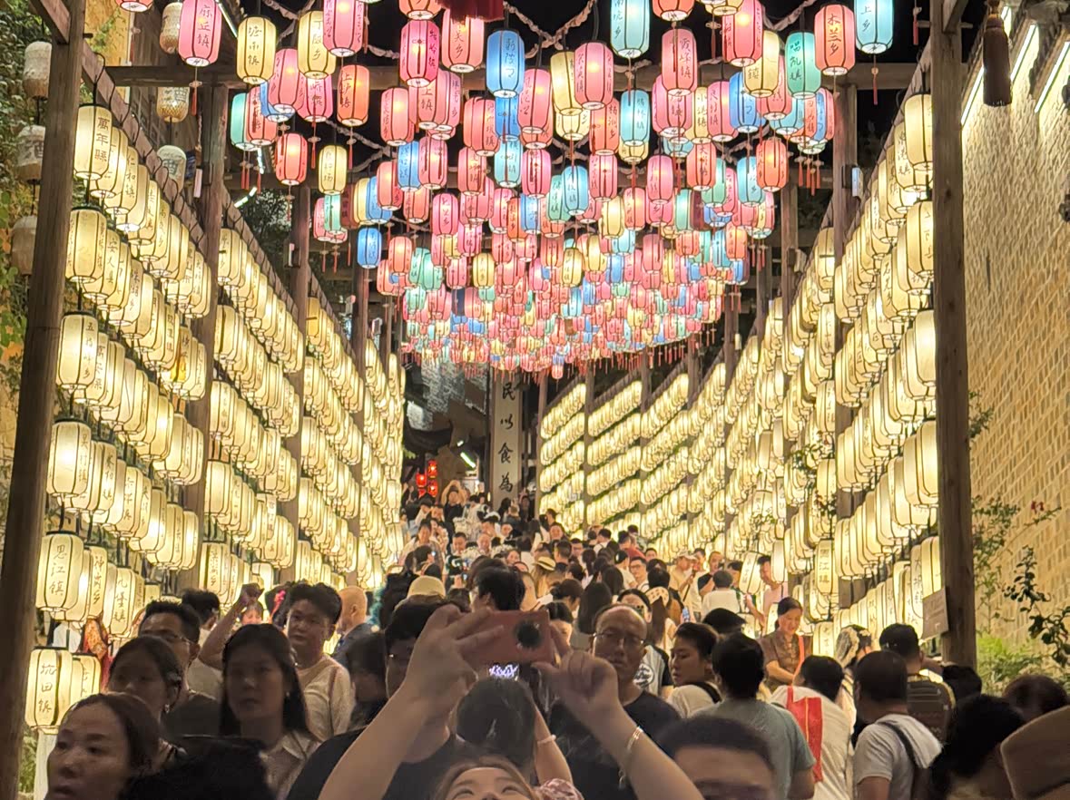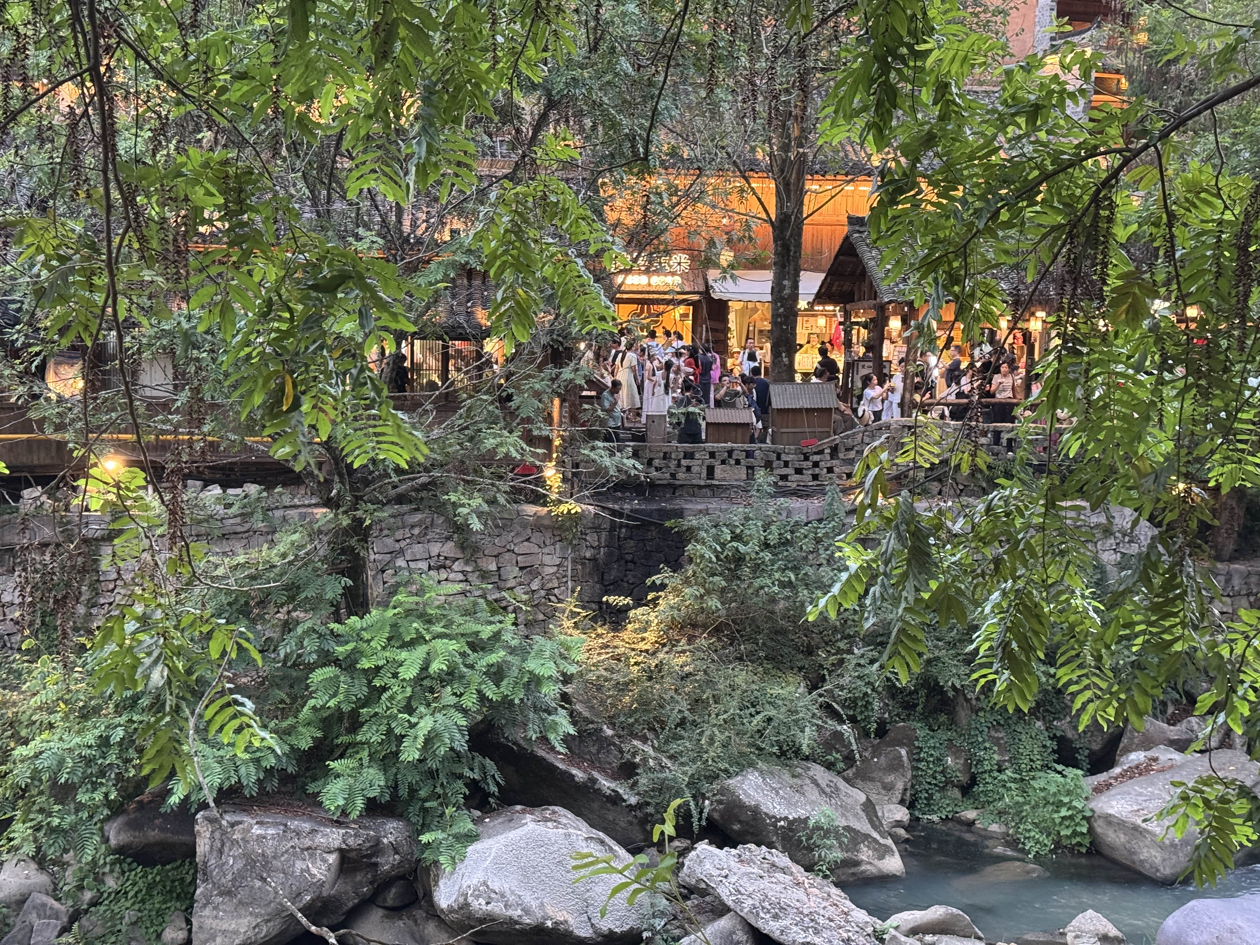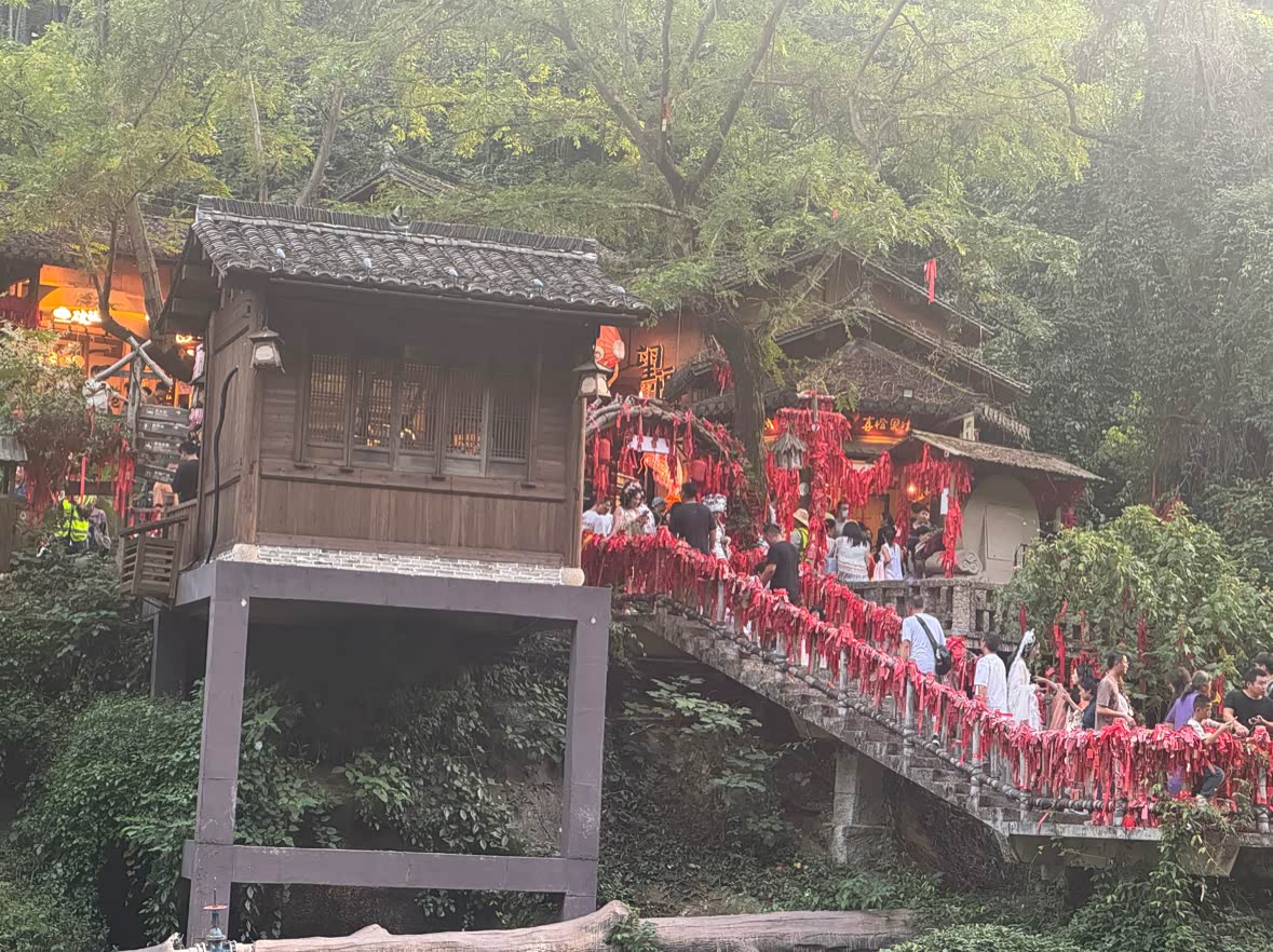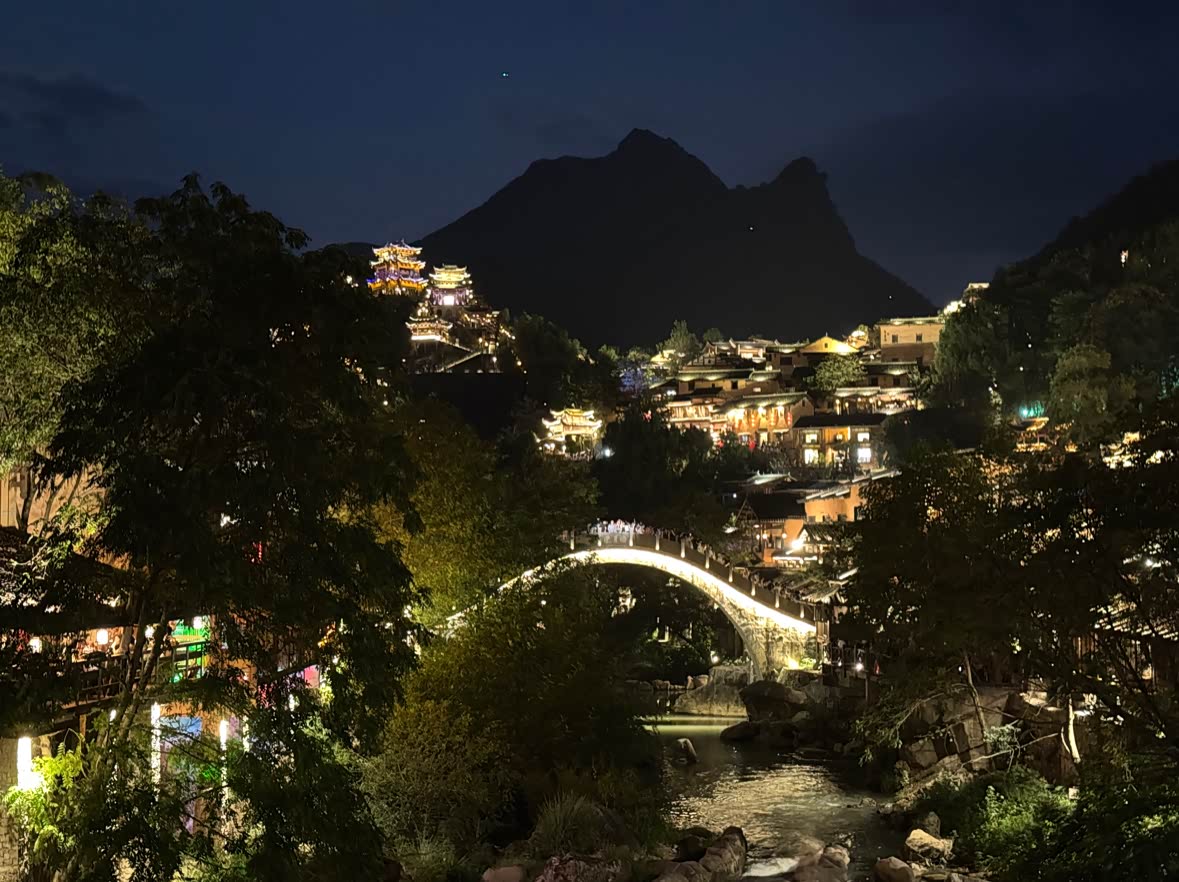 晚上八点,景区的篝火晚会准时开始,熊熊燃烧的篝火照亮了每个人的笑脸,也点燃了我们的热情,这份热闹与温暖至今仍让人记忆犹新。身着民族服饰的演员们带领着游客载歌载舞,我拉着老婆的手加入人群,儿子则在一旁穿梭奔跑,很快就和几个同龄的小朋友玩到了一起,跟着音乐的节奏蹦蹦跳跳,脸上洋溢着灿烂的笑容。看着儿子开心的样子,我和老婆相视而笑,满心都是幸福。晚会间隙,我们买了河灯,一家三口围在溪边各自许下心愿,儿子小声说希望以后能和爸爸妈妈去更多好玩的地方。我们一起将河灯轻轻放入水中,看着它随着溪流缓缓漂向远方,灯光在水面上摇曳,承载着我们对生活的美好期盼。这场热闹的篝火晚会、温馨的放河灯仪式,成为了此行最温暖、最难忘的亲子记忆。