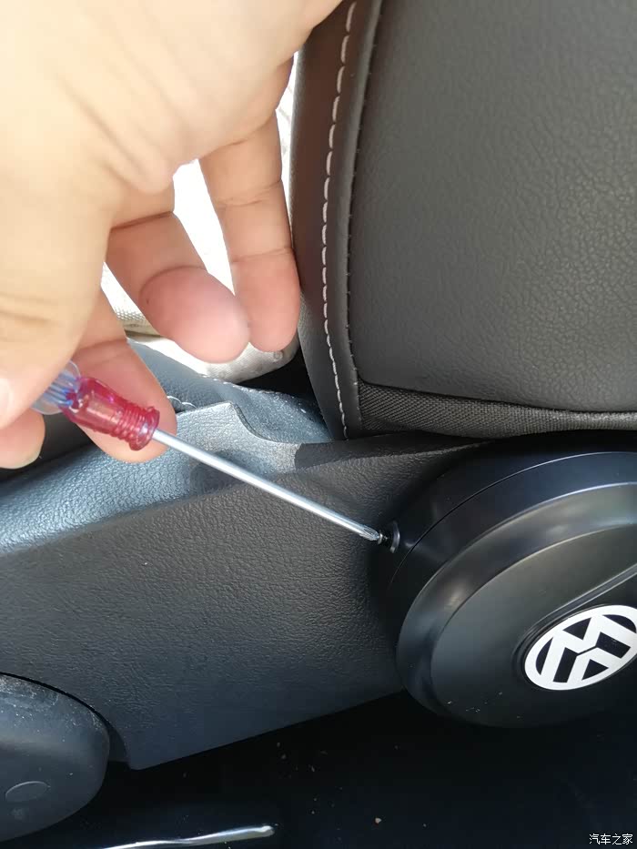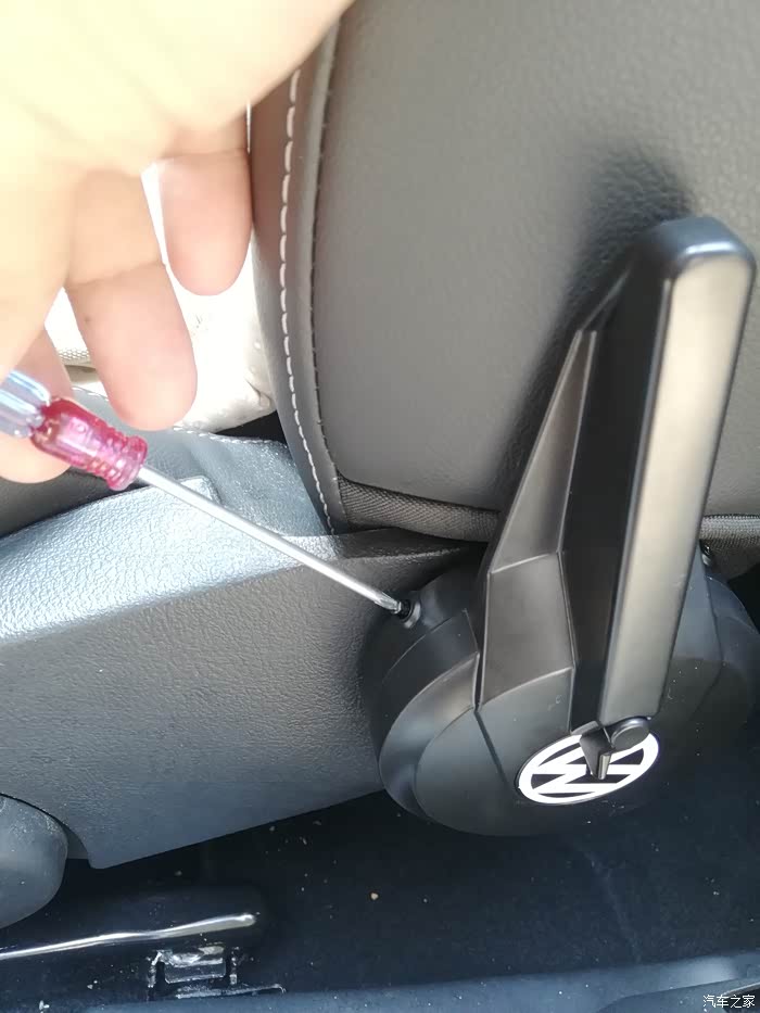 可是驾驶位靠背的前后调节就麻烦了,需要左手旋转拧大螺丝,很费劲。