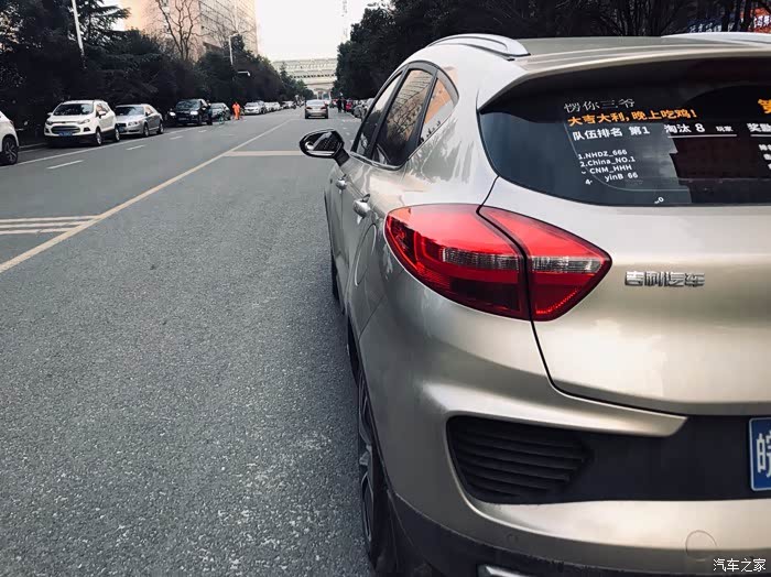 帝豪Gs采用的是自动大灯,很方便 再也不用担心忘记开灯了,近光、远光都LED灯光,近光带有透镜,穿透力好,近光灯很亮,晚上足够亮,北斗星状的LDE日间行车灯不论白天还是都很醒目,说到醒目说就帝豪Gs的行尾灯,尾灯夜晚更加醒目,能更好的提高安全系数,最后提醒各位车友合理使用灯光,安全你我他。