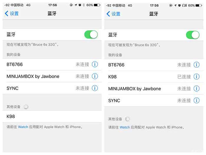 蓝牙连接非常方便,打开蓝牙耳机搜索模式。在手机就可以搜索到“K98”并连接