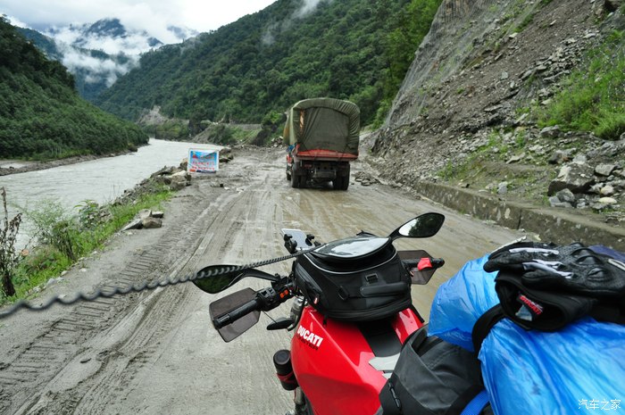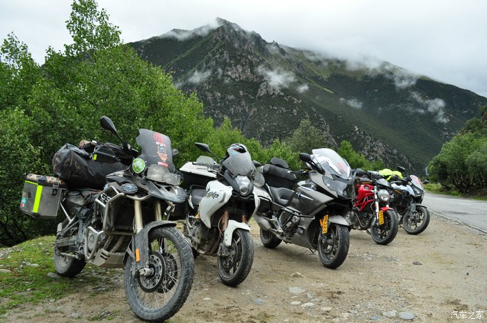 第7日,波密——工布江达,12小时骑行,最危险的一天,通麦天险果然刺激,简直就是故意修出来的景点一样的路,教科书式的烂的没有节操,刚出通脉又在山顶遇见大雨,瞬间能见度基本没有了。好消息是有两辆宝马加入了队伍,又带了2个搭车的朋友,一辆800gs,一辆1600,人多力量大,吃得好,玩得好,热闹了。