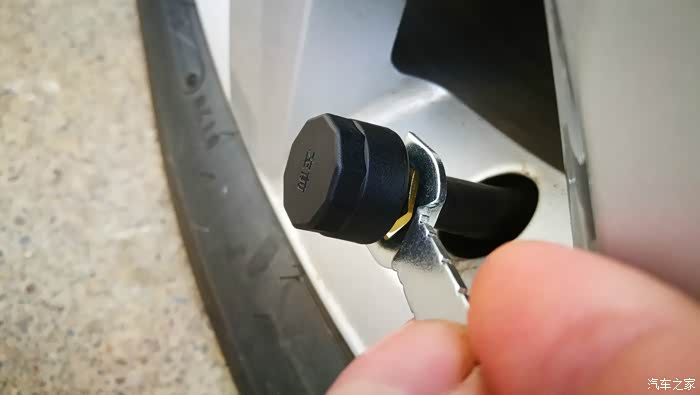 外置式胎压监测仪安装的确方便,拧下气门嘴螺帽,装上防盗螺丝,用专用扳手顺时针上紧传感器,再逆时针拧紧防盗螺丝。***!一个14号的小扳手会让防盗成为一个笑话!