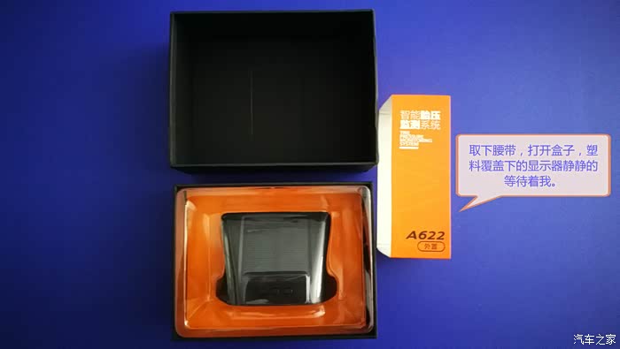 黑色硬纸盒,海绵泡沫包裹传感器,硬塑料固定显示器,盒子不大,包裹不大,简约不简单。