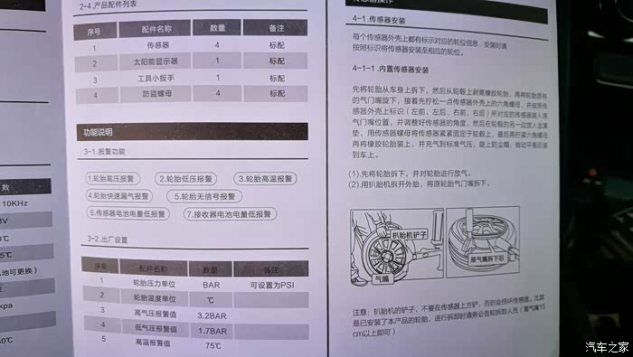 读读说明书的注意事项,开车途中不建议一直关注气压,因在默认设置中,轮胎气压低于2.6bar高于2.6bar都会报警,慢撒气、快速漏气都会发出滴滴声音报警,以免分散老司机的注意力。