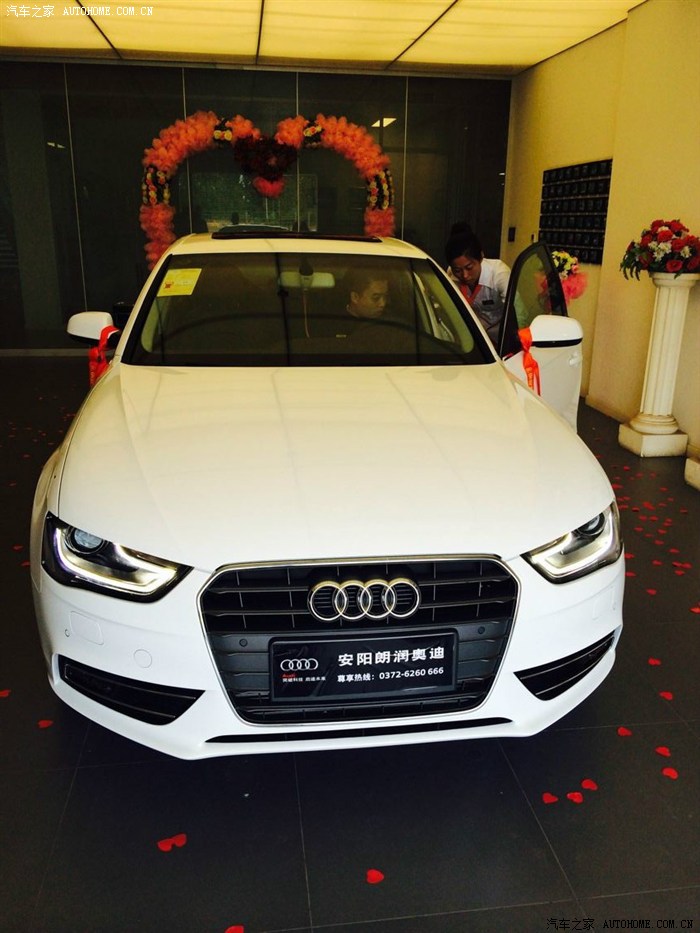 老婆一开始相中1系了,觉得小巧灵活,后来商量以后要孩子是个事,空间太小。又来看了A4老婆一眼也相中了,年轻又满足了空间,开起来十分舒适,立马就决定买A4了。开始订的金色家里人说有点浮夸,就转订白色了(多拿了2000元,心痛)。开始上传照片,车是3号提过来的,开了这几天一会在说下驾驶感受。