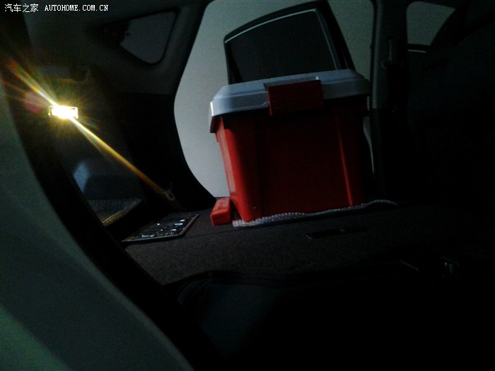 后座子 比例放倒后的效果 第三张是在后车门处照的 我的相机位置绝对水平!黑天了 lp手机没有闪光!发光的是后备箱照明灯。