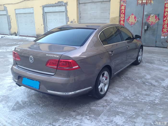 有买车的想法是在2014年末,因为来年要结婚,还有家里也需要这么一辆车,出行可以方便一些,有了孩子也方便他娘俩,可是在选车上出现了难题,选什么车?比较适合家用,我和我媳妇当初看了CRV,白色的CRV确实真的漂亮啊~!有一阵已经到了痴迷的程度,中毒颇深,到最后也是被PASS掉了,因为一是(你懂得),二是车大,媳妇自己开的时候停车是个问题(到现在看来,是车都是问题,跟体积没关系),然后家里老爷子说大众车皮实,抗造,耐用,可以关注下,定位在迈腾,CC,帕萨特中间,从这时候开始关注了迈腾这款车,首先说CC吧,CC的外观非常漂亮,可以说是大众最漂亮的一款车了吧,车高,车宽,车身曲线,和最能提升身价的车门无框玻璃,简直迷死了,可惜最大的问题也就是曲线车身导致车内前排,后排空间坡小,家用的话实在不妥,忍痛割爱吧,PASS掉。在说说,当时也看了奥迪A4L,奥迪品牌**高,A4也漂亮,可是预算30万内买不了A4L的高配,觉得宁当鸡头不当凤尾,也就PASS掉了,也看了Q3,途观等车,最后还是定在销量好的迈腾和帕萨特之间,老爷子倾向于帕萨特,我还是觉得迈腾比较好一些,也从网上了解做工啊,细节啊等等啊,还是很不错的,结果可想而知啊,我不可能输的!颜色上呢,选择了开罗金,因为黑色太多了,而且商务气息太浓烈,白色的呢我媳妇说像速腾,所以定金色吧!排量上2.0T的排量也是很满意的,也是大家说1.8的变速箱发动机问题多一些,才选择的2.0的,到现在也没出现过问题,还是选对了,配置上,尊贵的配置很符合我意,也都比较齐全了,一切定好,水到渠成,准备提车!去4S店提车中也是很顺利的,有现车,两辆车都是金外咖内的,检查全车,付款提车,好了,下面开始上图吧!