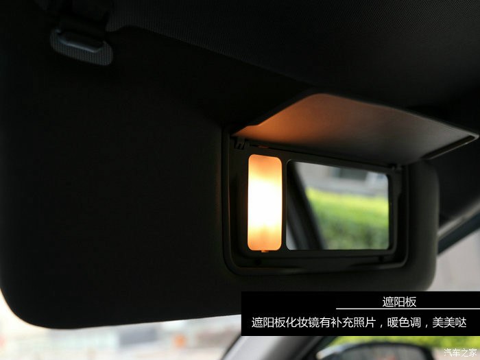 ▼遮阳板内侧化妆镜有照明,在这个价位的车里也不算什么高级的配置了,好在没一水使用LED光源,这个部位一定要保持暖色调,这样照镜子才能显着亮色好,美美哒。