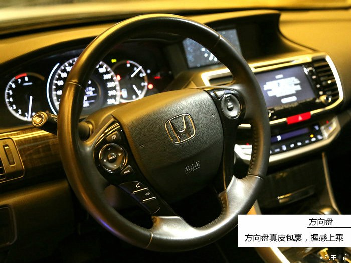 ▼第九代雅阁的中控台重新设计,用料也好于第八代,搪塑工艺的软质材料包裹,配合木纹装饰板,层次感强烈,线条多变,两块显示屏,本田你要干嘛?活生生要营造一种科技前卫的感觉?你赢了!
