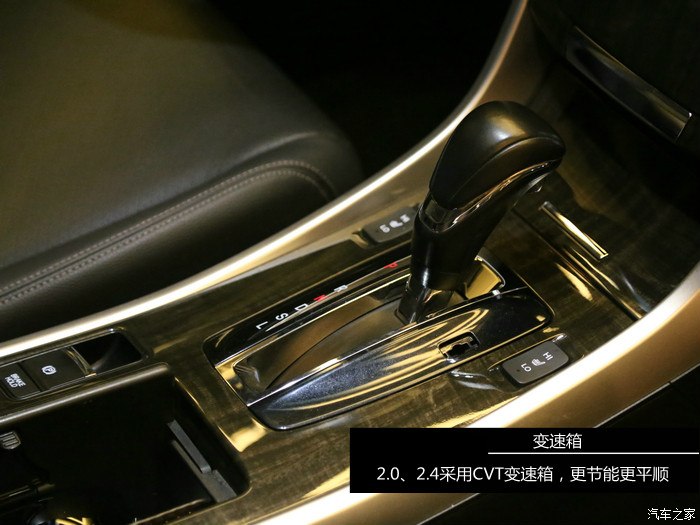 ▼第九代雅阁的变速箱有两款,2.0与2.4排量的配备的是这台CVT变速箱,特点无疑就是平顺,特别说一下档位在S档转速会保持在2000rpm以上,偶尔追求一下推背感,完全可以满足。