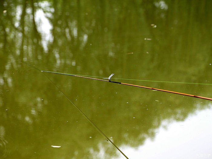 ▼闺女既然睡醒了,那一定是能量充足,满血,那就一起溜达溜达吧,瞧,一直蜻蜓在鱼竿上歇脚。