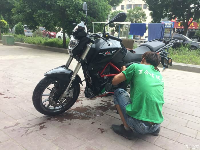 到达西宁找到贝纳利的专卖店,开始保养。